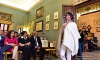 Caterina CELESTINO, portavoce dell’azienda, ha fatto il pieno di complimenti ed apprezzamenti. Le preziose collezioni hanno, infatti, vestito i corpi dei modelli e delle indossatrici, ipnotizzando, al loro passaggio, per i disegni e la texture, l’attenzione dei presenti. L’ideale passerella allestita lungo i tre salotti di Palazzo FERRAJOLI è stata impreziosita anche dal passaggio dell’abito indossato dalla celebre attrice statunitense Ava GARDNER negli anni ’60, realizzato da CELESTINO e confezionato dalla giovane Micol FONTANA.
