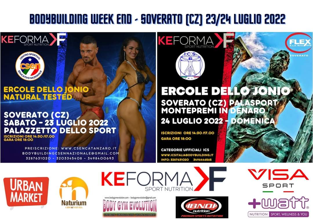 Due giorni di grande body building a Soverato. Sabato 23 e domenica 24 luglio in scena al Palazzetto dello Sport l'“Ercole dello Jonio”, manifestazione promossa dallo Csen Catanzaro, presieduto da Francesco De Nardo, e dalla Federazione Ics, presieduta da Angelo Giustiniani, con la collaborazione dell'Asd Flex Gym di Soverato, affiliata Csen, e il supporto di numerosi sponsor locali e nazionali. Primo appuntamento con le selezioni Csen “Natural tested” alle ore 18 del 23 luglio con le categorie Body Building Uomini, Uomini Hp, Man Phisyque, Man Classic, Donne Model, Donne Bikini, Donne Fitness, Donne Shape, Donne Miss Wellness e Donne Body Fitness. Domenica 24 luglio si comincia al mattino, dalle 10 alle 13, con uno stage “old school” teorico-pratico presso la palestra Flex Gym di Giovanni Sgrò, con i campioni Andrea Nuccitelli e Fabio Sallusti. L'attesissima gara-spettacolo “Ercole dello Jonio Ics Italia 2022” con montepremi in denaro si svolgerà nel pomeriggio di domenica, a partire dalle ore 18. Un particolare ringraziamento per l'ospitalità e la collaborazione, da parte degli organizzatori, al sindaco di Soverato, Daniele Vacca, agli amministratori comunali Rosalia Pezzaniti ed Emanuele Amoruso e a Valerio Geracitano (Asd Ad Maiora) per l'aiuto logistico. Non ultimo, al presidente regionale Csen, Antonio Caira. Nel corso della “due giorni” verranno selezionati quattro testimonial Visa Sport e +Watt che saranno ospiti dei rispettivi stand al prossimo Rimini Wellness 2023.