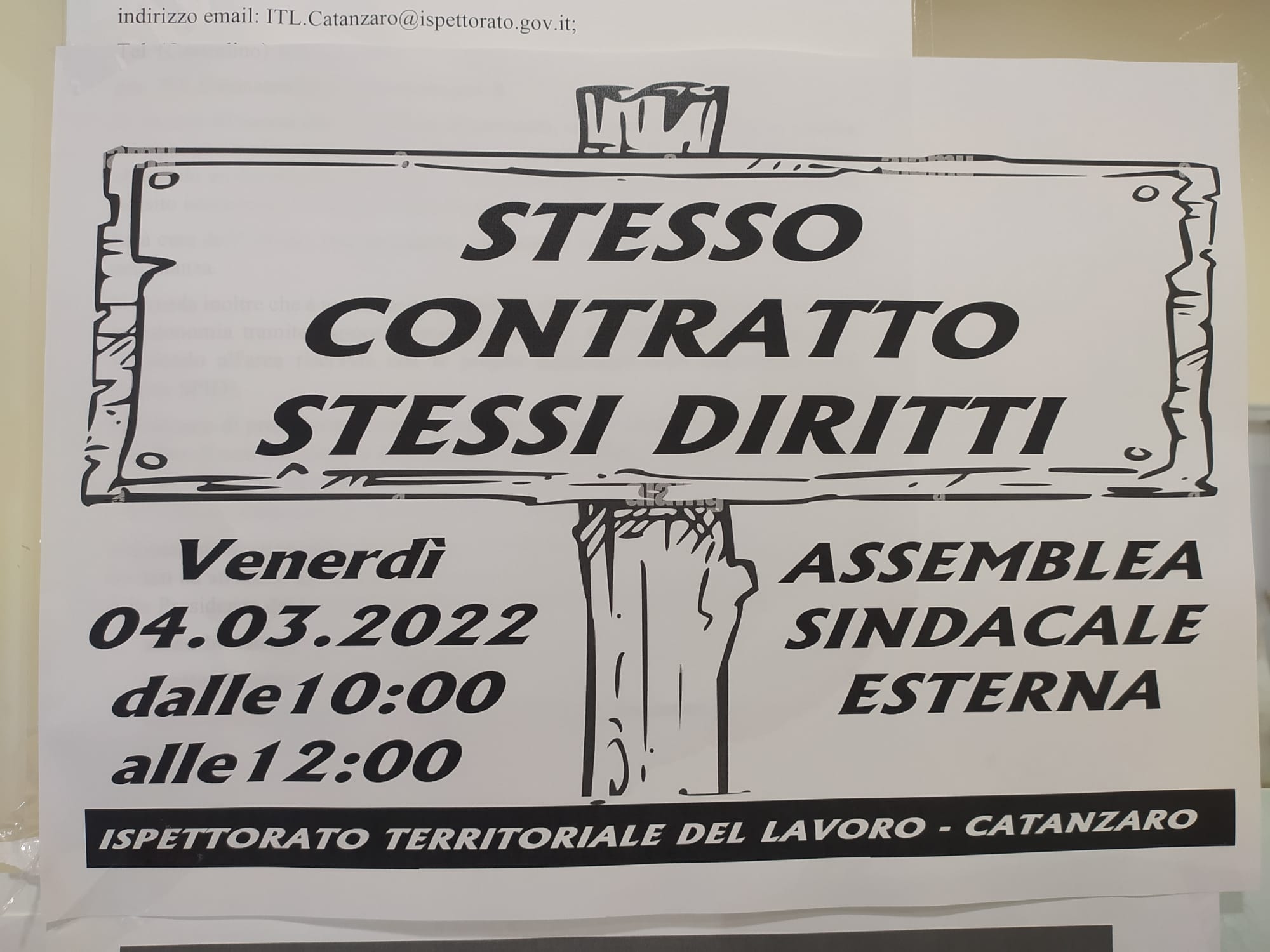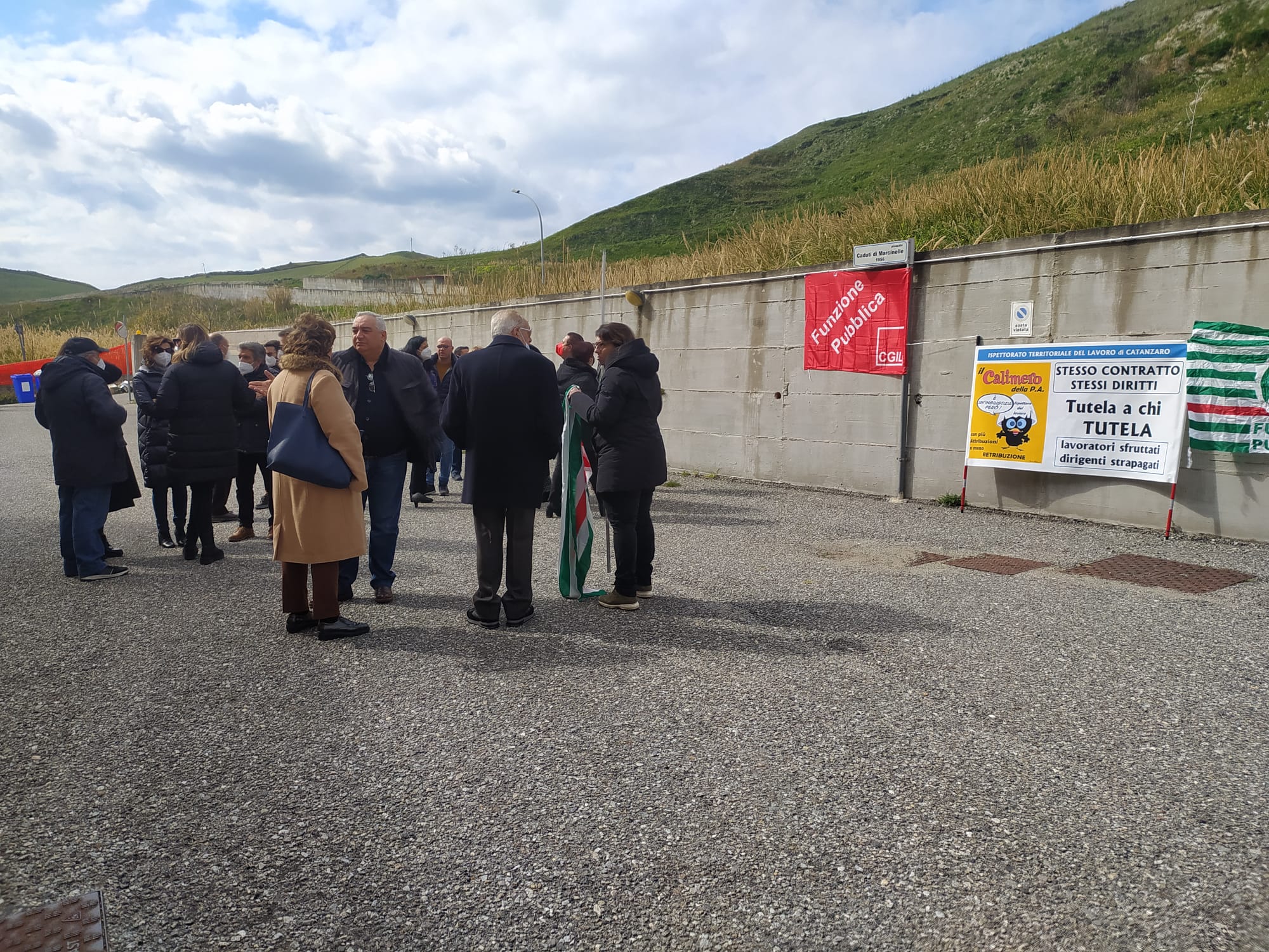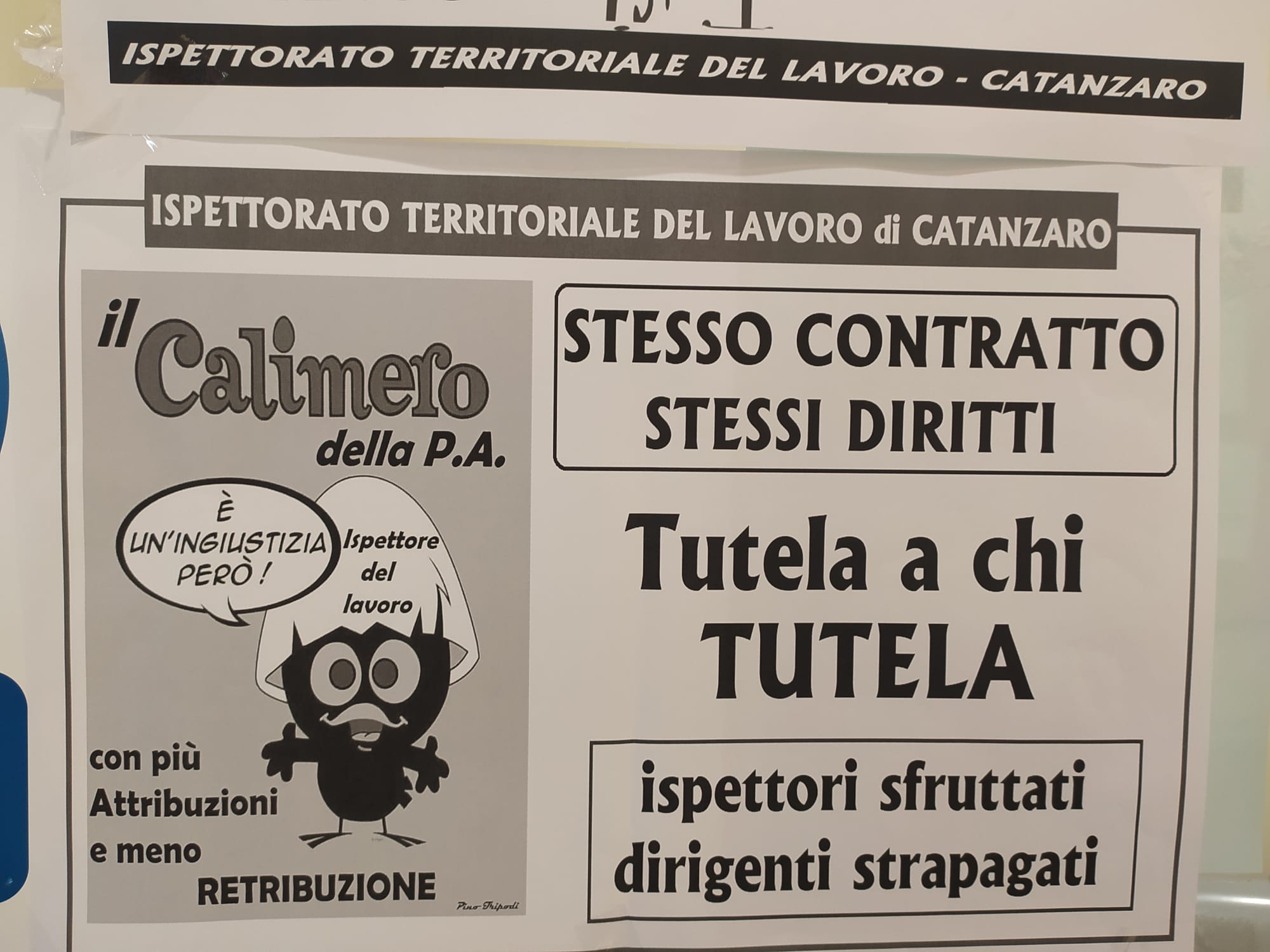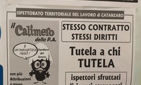 E' in atto in queste ore la protesta dei lavoratori dell'ispettorato del lavoro di Catanzaro, che con il supporto di Cgil, Cisl e Uil chiedono insieme parità di trattamento economico rispetto agli altri dipendenti della pubblica amministrazione e del ministero del Lavoro. Lo slogan scelto per la protesta è "Tutela a chi tutela" come sottolineato o da alcuni manifesti esposti davanti la sede dell'ispettorato del lavoro di Catanzaro.