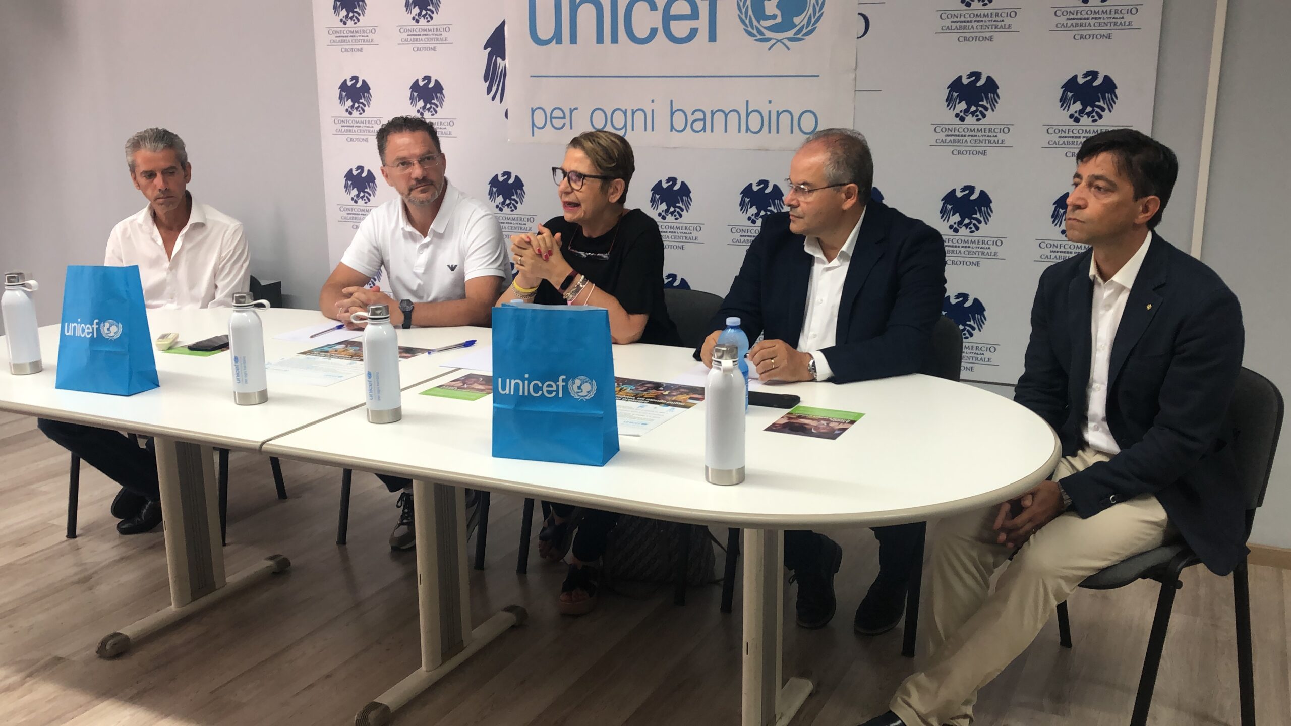 Una borraccia per i bambini ucraini. È l’iniziativa messa in campo dal comitato Unicef di Crotone presieduto da Giusy Regalino in collaborazione con il SIB (Sindacato Balneari di ConfCommercio) presieduto da Luca Manica. Nel fine settimana appena trascorso ben il 70% delle borracce è stato venduto, grazie al lavoro svolto dal Sib. Nonostante le difficoltà che il territorio e la città attraversano, ancora una volta si è avuta la prova del grande cuore dei crotonesi, pronti sempre a dare in nome della solidarietà. Soddisfazione è stata espressa dalla presidente Giusy Regalinonell’evidenziare la mission di UNICEF e la volontà del Comitato provinciale di Crotone di dar vita a progetti di solidarietà che riguarderanno i bambini delle periferie cittadine. Scopo dell’Unicef è quello di stringere collaborazioni – ha detto ancora Giusy Regalino – significa avere maggiore disponibilità nel far conoscere la mission di Unicef e di guardare alle diverse realtà esistenti. Oggi parliamo dei bambini ucraini ma non possimo dimenticare lo stato di difficoltà che molti bambini vivono nella nostra stessa città ed è a loro che guarderanno alcuni dei nostri progetti futuri. Alla conferenza stampa ha preso Michele Affidato, ambasciatore nazionale di UNICEF che ha evidenziato la crescita in pochi mesi del Comitato provinciale di Crotone che, anche in tempo di vacanze prosegue la sua azione svolgendo “un grande lavoro, ponendo in risalto la grande solidarietà di un territorio”. Quest’iniziativa, fortemente voluta dal Comitato provinciale di Crotone sta ottenendo buoni risultati. Sono tante le iniziative messe in campo e non solo rivolte ai bambini dell’Ucraina. In particolare proporrò a livello nazionale lo studio di campagne rivolte ai bambini delle nostre periferie poiché anche nei nostri territori si avverte forte il bisogno”. Una chiamata importante che non poteva rimanere inascoltata quella di UNICEF ai balneari che si sono da subito attivati che, ogni qualvolta viene proposta un’iniziativa di carattere sociale rispondono sempre positivamente, ha sostenuto Luca Manica nel ringraziare i suoi colleghi. L’intento, ha concluso Manica – in collaborazione con il coordinamento provinciale Unicef è quello di riproporre l’iniziativa anche nel prossimo mese di agosto”. Giusy Regalino nel dare la parola al presidente di Confcommercio Antonio Casillo ha sottolineato la grande disponibilità dimostrata dai commercianti chiamati a dare il proprio contributo. “Confcommercio ha aperto le porte di casa propria all’UNICEF con l’intento di creare sinergie positive, ha sostenuto Casillo. “Far del bene ai bambini pr noi significa dare un’esempio virtuoso del nostro cammino. Noi facciamo impresa e investiamo il nostro lavoro, le nostre giornate in direzione della crescita del territorio e vogliamo sviluppare un tema importante che è quello della solidarietà”. Il direttore Ferrarelli ha ricordato il protocollo stilato con Unicef che fa di Confcommercio la casa del Fondo delle Nazioni Unite per l’infanzia. Gli esempi trascinano – ha proseguito Giovanni Ferrarelli e noi siamo lieti di questo rapporto nato con Unicef. Questa è solo la prima delle tante iniziative che faremo insieme. Nel concludere la conferenza stampa il presidente dell’UNICEF di Crotone ha annunciato nei prossimi giorni l’inaugurazione della sede del comitato che sarà situata all’interno dei locali di Confcommercio Crotone e il nuovo organigramma che opererà al suo fianco, sul territorio nell’informare e sensibilizzare l’opinione pubblica sui diritti e sui bisogni dell’infanzia e dell’adolescenza a livello globale.