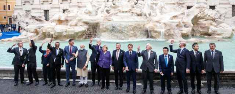 L’immagine dei leader(?) del G20 che lanciano la monetina nella fontana di Trevi è emblematica della consapevolezza e della padronanza della situazione che possiedono in questo momento i rappresentanti delle nazioni economicamente più sviluppate. Non hanno la più pallida idea di cosa fare ma continuano ad ostentare sicurezza e la falsa cronaca dei media, che ci racconta di un successo, nasconde in realtà solo l’ennesimo fallimento. La fotografia immortala i 20 grandi impotenti che governano le nostre società. Se i problemi non fossero gravi e urgenti ci sarebbe da ridere ma così non è...