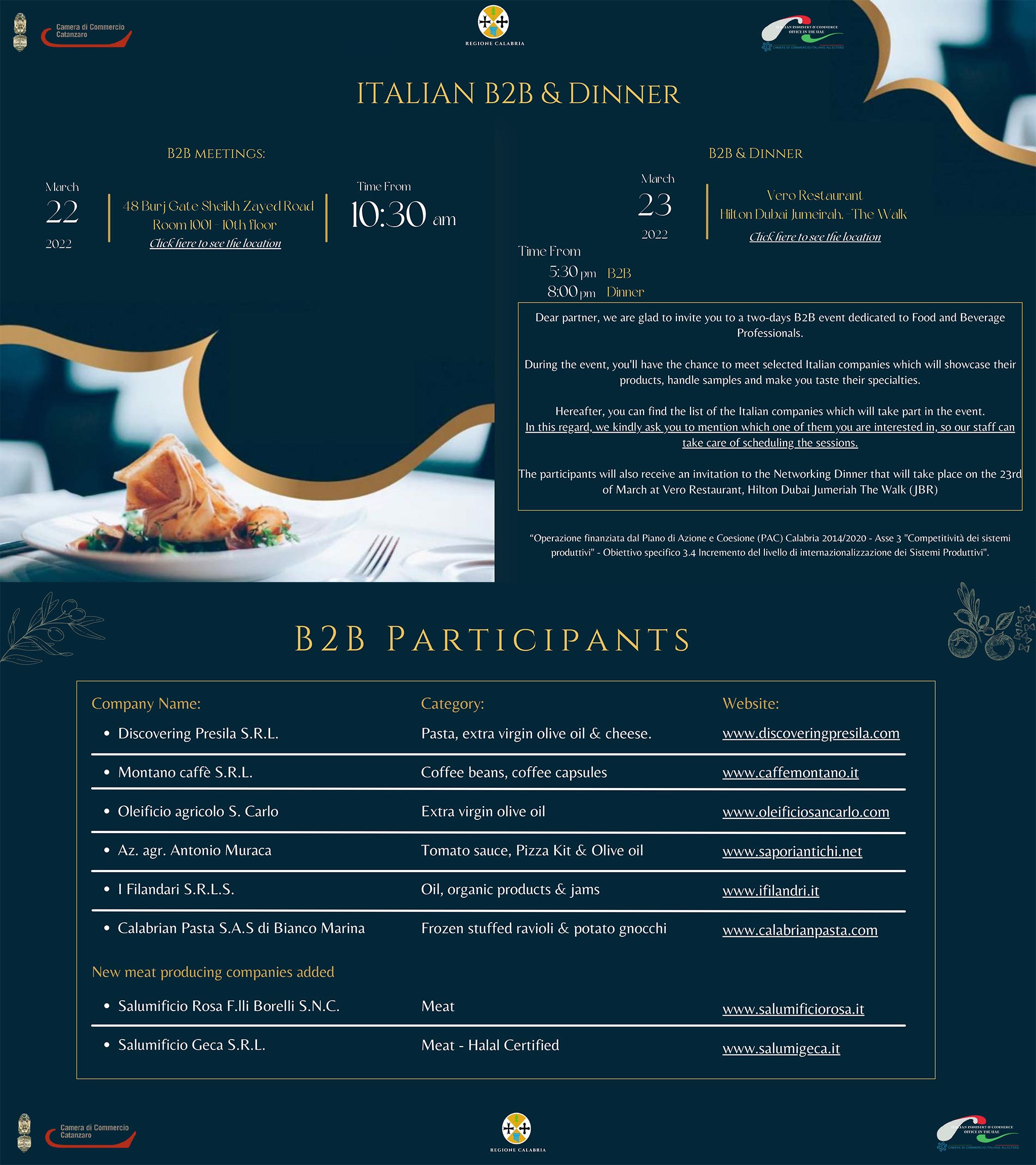Si terrà il 22 e il 23 marzo un’altra iniziativa della Camera di Commercio di Catanzaro improntata alla promozione della produzione enogastronomica della provincia nel panorama internazionale offerto dall’Expo di Dubai.