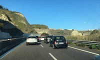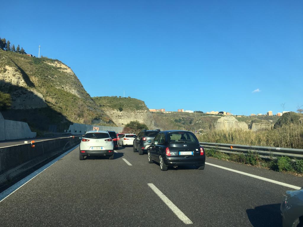 Punto raccolta dei tifosi del Bari: traffico rallentato in prossimità della galleria del Sansinato.