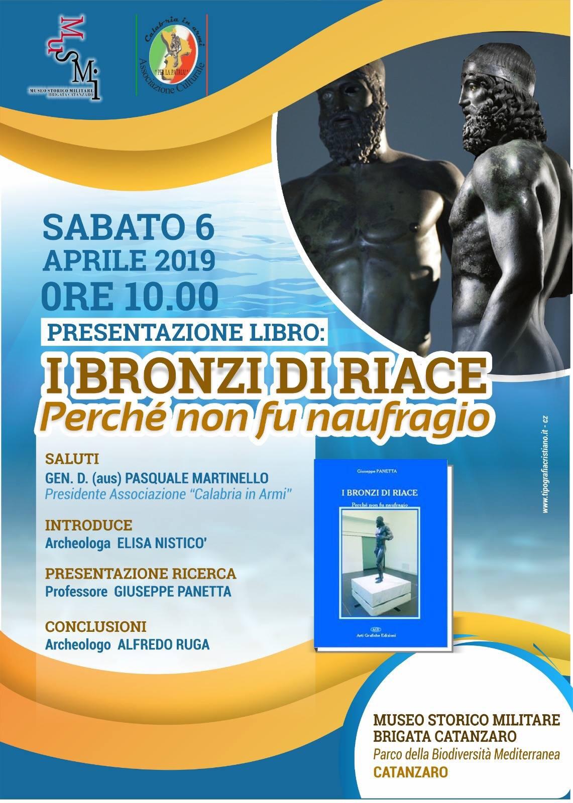 Si terrà sabato 6 aprile alle dieci nelle sale del Museo Storico Militare, la presentazione del libro " I Bronzi di Riace, perchè non fu naufragio" di Giuseppe Panetta.
