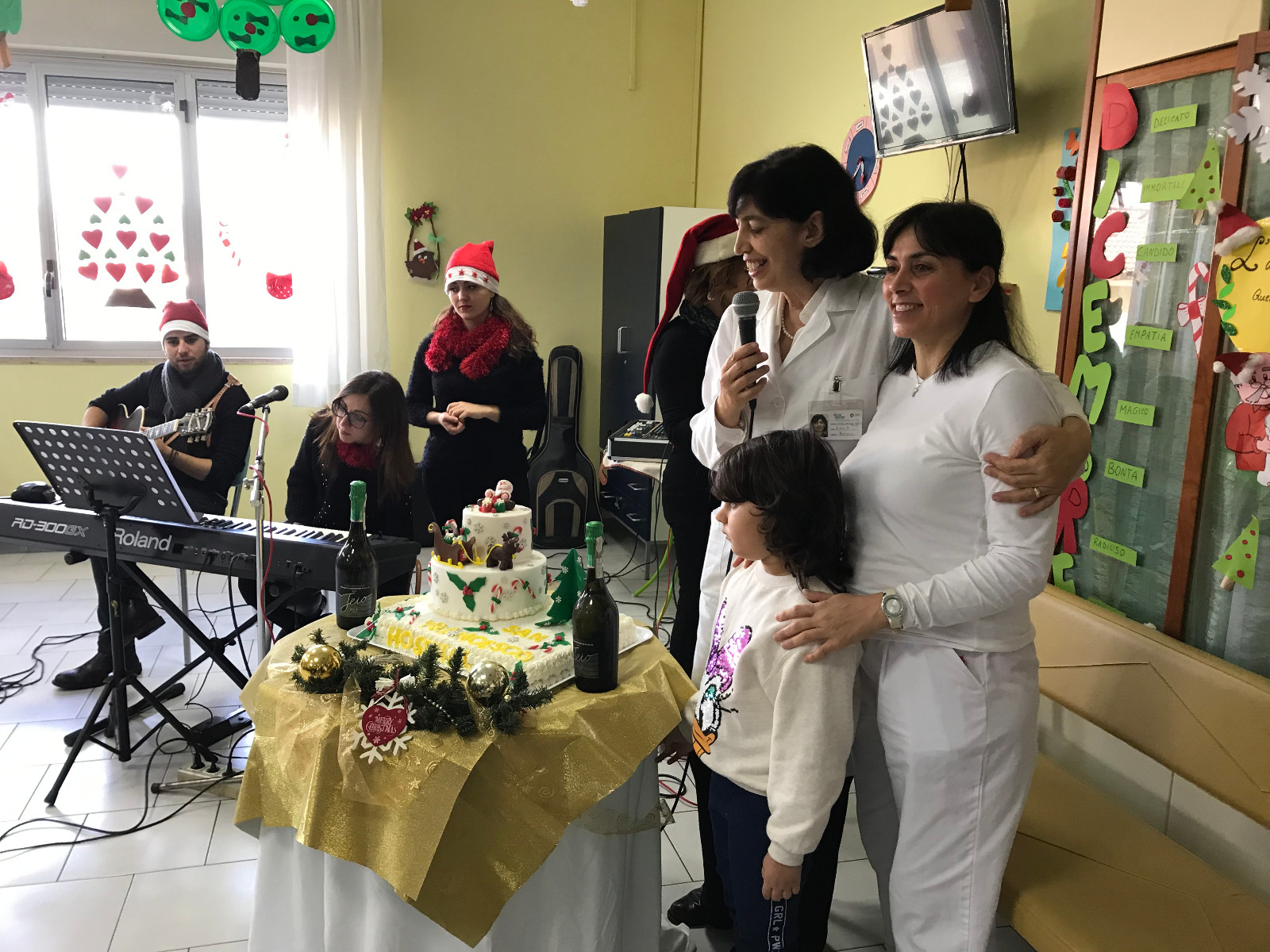 Il momento più emozionante e' stato l'arrivo di Babbo Natale ( il nostro generoso OSS Giovanni Guzzo) che ha portato un dono a tutti i pazienti ed ha letto alcuni loro bigliettini contenenti le " letterine" dei desideri