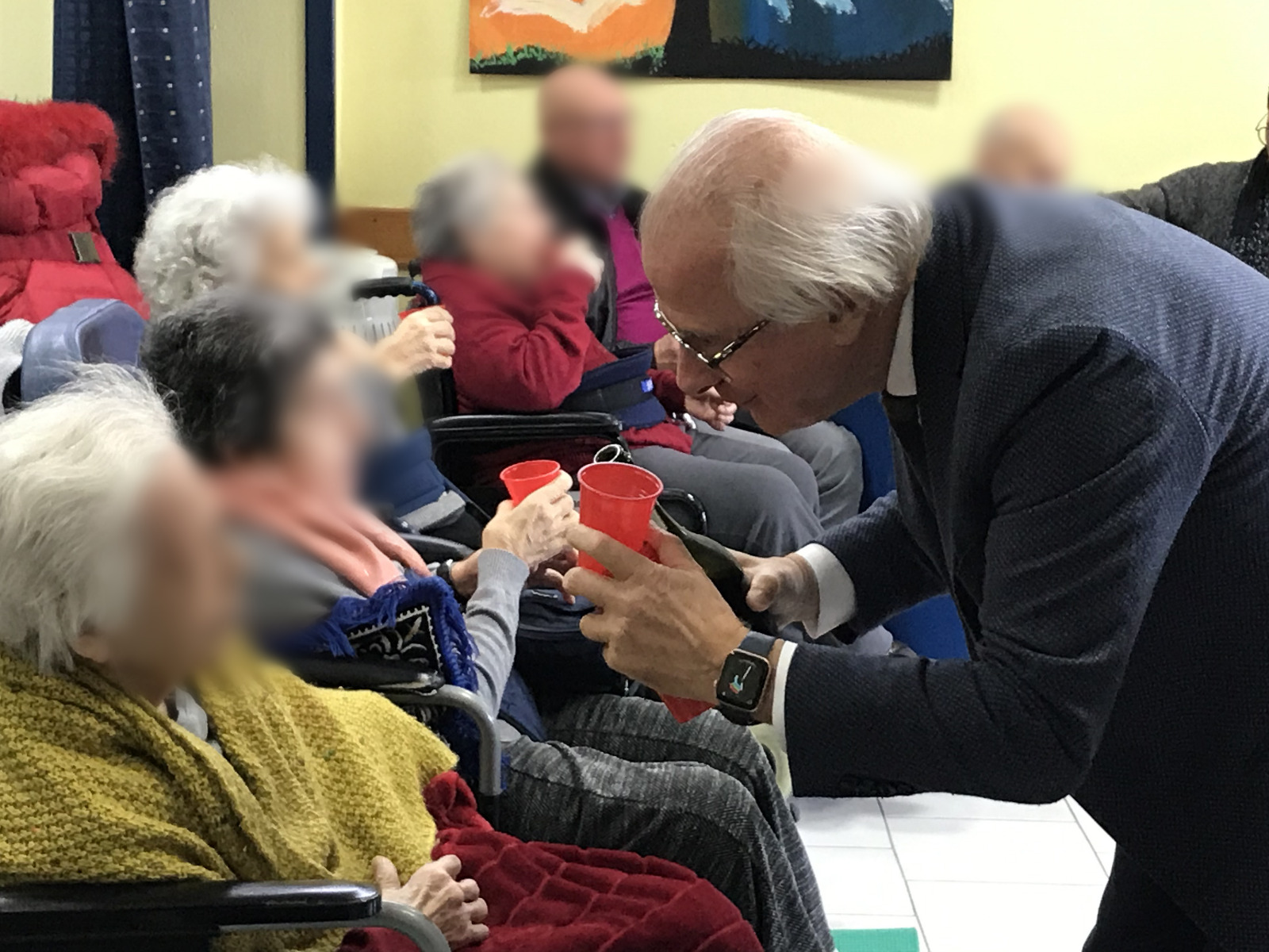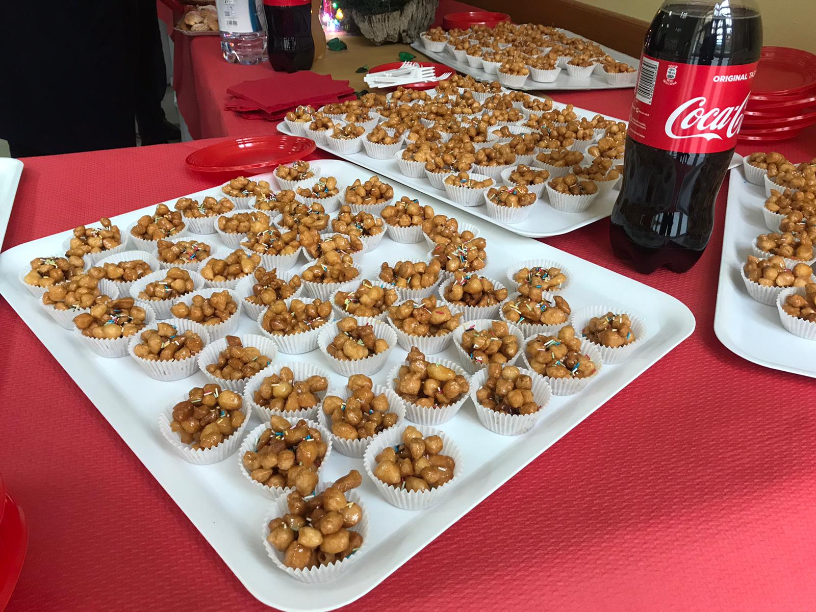 Alcune OSS della struttura hanno preparato dolci delizie per il buffet( la Signora Rosanna Castano ' per una splendida torta , la Signora Emma Mascaro un cestino di pane con dentro i rustici salati , tutti gesti di affetto verso i pazienti ed i familiari).