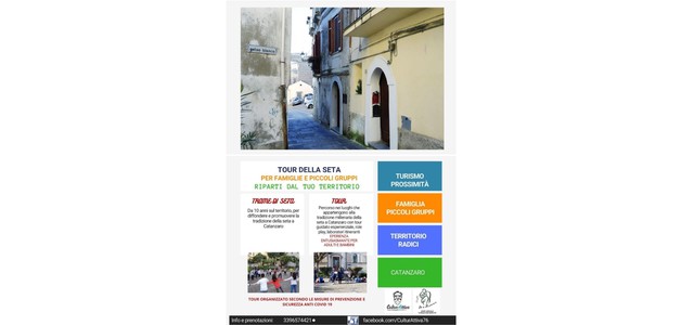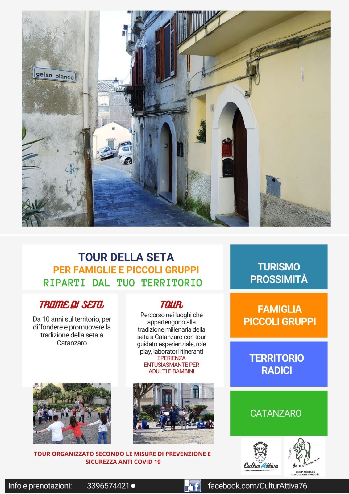 Dal 13 giugno si ripartirà, dunque, con le famiglie e i piccoli gruppi, da dove il cammino si è interrotto e cioè da Trame di Seta, il laboratorio itinerante di CulturAttiva e Cooperativa “L’isola che non c’è”, svolto in questi anni con il patrocinio del Comune di Catanzaro e basato sul legame intimo ed inscindibile della città di Catanzaro con l’arte della seta che si rispecchia in alcuni toponimi e laddove essi non possano aiutarci, nella storia stessa di molti luoghi della città, che diventeranno teatro di mini laboratori ispirati ad un passato che non verrà solo raccontato, ma rivissuto.