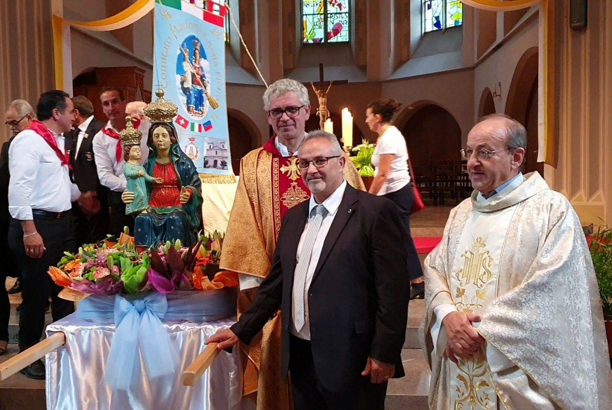 Una straordinaria testimonianza di fede in terra elvetica. La numerosa comunità di emigrati chiaravallesi in Svizzera e Liechtenstein, anche quest'anno, ha celebrato con notevole successo di partecipazione i rituali festeggiamenti in onore di Maria Santissima della Pietra. Sedicesima edizione per la manifestazione religiosa organizzata dall'attivissimo comitato guidato dal presidente Pino Gullì e che si lega ai festeggiamenti patronali del paese natio, in Calabria. La chiesa di Schaan, fiorente e popolosa cittadina del principato, ha ospitato la santa messa concelebrata dal parroco di Chiaravalle Centrale, don Roberto Celia, e dal responsabile della locale missione cattolica italiana, don Egidio Todeschini. Venticinque anni di sacerdozio per don Roberto e cinquanta per don Egidio. Per loro, festa doppia. Hanno presenziato, giunti sul posto per l'occasione, il sindaco di Chiaravalle Centrale, Domenico Donato, il vicesindaco, Stefania Fera, gli assessori Gianfranco Corrado e Bruno Santoro, i consiglieri Liberata Donato e Claudio Foti, il presidente della Consulta comunale della Cultura, Francesco Pungitore. Ad accogliere la delegazione politica calabrese, il corrispondente consolare, Egidio Stigliano, e il segretario generale del Consiglio degli italiani all'estero, Michele Schiavone. Molto suggestiva la tradizionale processione per le vie di Schaan, accompagnata non solo dai chiaravallesi in Svizzera e Liechtenstein ma dai tanti italiani che vivono e lavorano in terra elvetica e nel principato. Nel centro polifunzionale della Saal di Schaan, l'epilogo delle celebrazioni, con la benedizione, i saluti istituzionali e il via al programma dei festeggiamenti civili, tra musica, buona cucina tipica calabrese, spettacoli e tanto divertimento. Valori, identità, radici, senso di comunità, socializzazione: innumerevoli gli aspetti positivi di questo evento che coinvolge e commuove sempre di più, anno dopo anno.