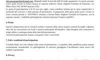 Al termine del concorso (con scadenza il 10 ottobre) e in occasione della serata di premiazione, che si terrà il 18 ottobre 2019 presso la Sala Concerti del Comune di Catanzaro, saranno decretati i vincitori assoluti di ciascuna sezione in seguito ad un’accurata selezione da parte di una giuria qualificata appositamente scelta. Per ulteriori dettagli e per consultare il bando completo, si rimanda al linkhttps://drive.google.com/file/d/1XdNhhlnr2J-uoi6daCD8Dgz8HneaqE2Z/view?ts=5d7e45c9e al sito del Comitato, ladante.it .