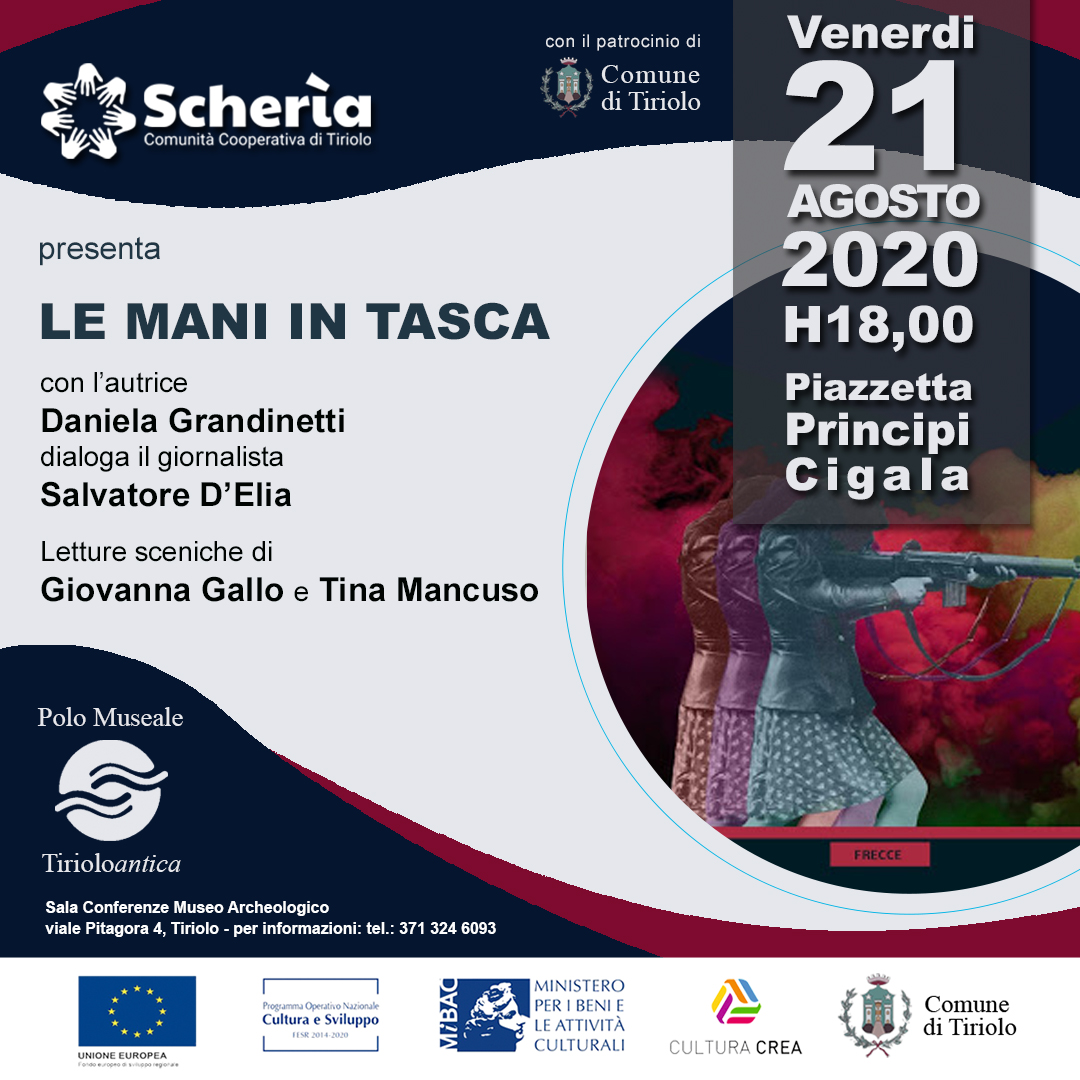 “Le mani in tasca” è il titolo del nuovo romanzo di Daniela Grandinetti, edito da Augh! Edizioni, che verrà presentato domani 21 agosto a Tiriolo, presso la Piazzetta Principi Cigala alle ore 18:00.