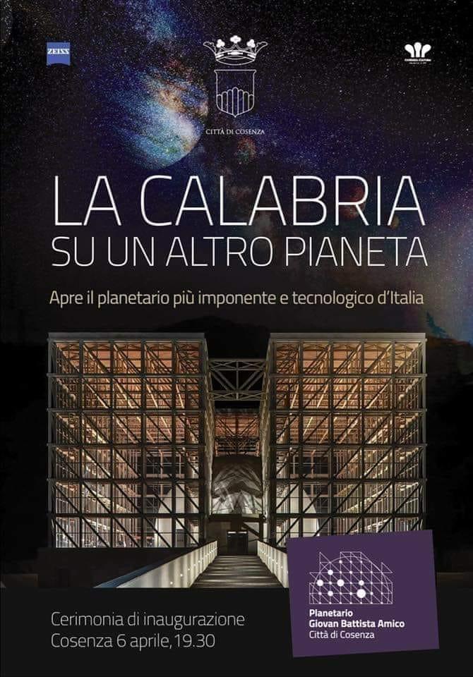 La Calabria con gli occhi al cielo sabato 6 aprile, quando, all’imbrunire (dalle 19,30 circa), l’Amministrazione comunale di Cosenza consegnerà non solo alla città ma al Meridione tutto un’importante opera pubblica: il Planetario di Cosenza, che sarà intitolato all’astronomo cosentino rinascimentale Giovan Battista Amico. Alla presenza dell’astrofisica cosentina Carla Savaglio, madrina dell’evento, il sindaco di Cosenza Mario Occhiuto si accinge a consegnare alla Calabria il planetario più innovativo d’Italia, secondo solo per dimensioni a quello di Milano.