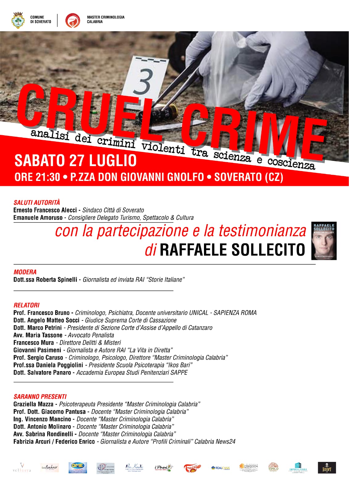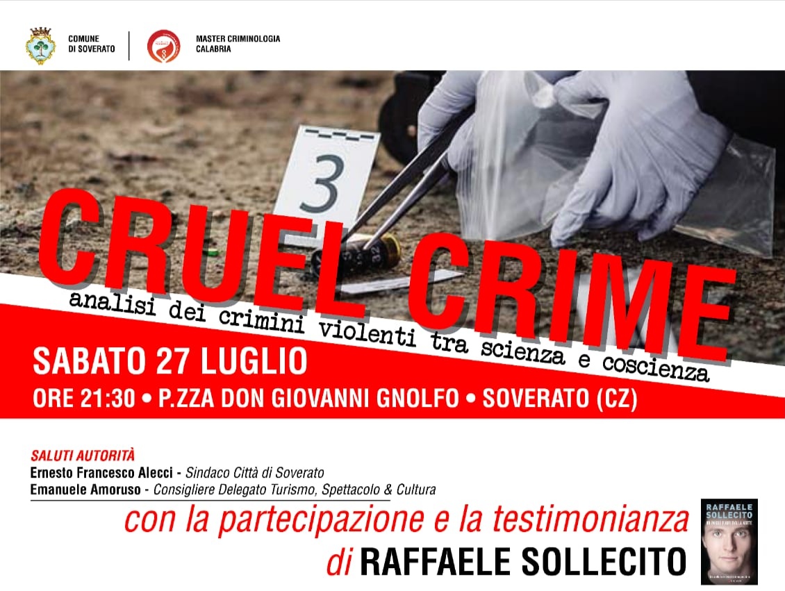 Questa prima edizione nella Città di Soverato vanterà la presenza di volti noti ed esperti della psichiatria e criminologia forense, avvocati e giudici delle Alte Corti della Giustizia Italiana nonché noti giornalisti che si sono occupati dei casi di cronaca italiana.