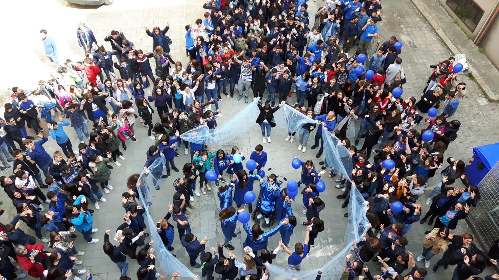 Su iniziativa del dirigente scolastico dott.ssa Lidia Elia e dei docenti, gli alunni sono stati coinvolti in varie attività laboratoriali e creative, di ascolto e di dialogo e hanno realizzato elaborati per promuovere la conoscenza dell’autismo e la solidarietà nei confronti delle persone con tali problematiche. Il colore blu rappresenta il desiderio di conoscenza e di dare e ricevere sicurezza ed è questo che è emerso durante la manifestazione dalle testimonianze degli alunni.