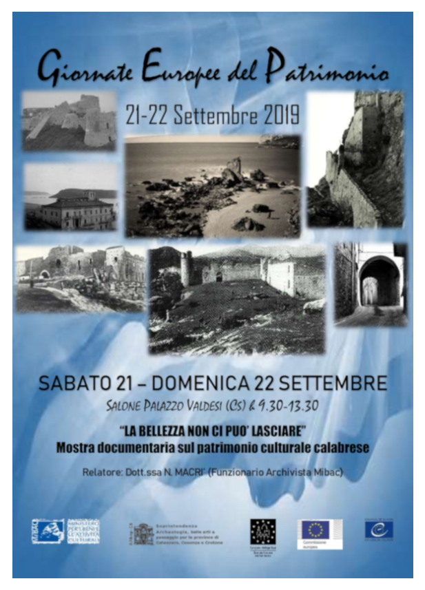 Sarà la mostra “La bellezza non ci può lasciare” ad aprire il ciclo di iniziative promosse dall’ufficio Promozione e Divulgazione della Soprintendenza Abap per le province di Catanzaro, Cosenza e Crotone in occasione delle Giornate Europee del Patrimonio previste il 21 e 22 settembre.