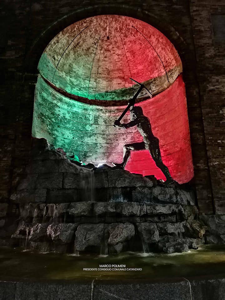 Cosi inizia il messaggio Facebook di Marco Polimeni che rende noto che da questa sera anche Catanzaro avrà i colori dell'Italia nel suo monumento simbolo: Il Cavatore