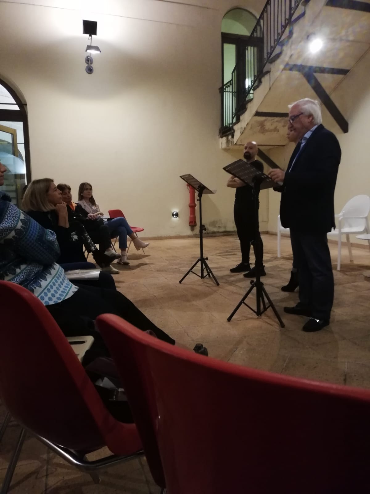 Il workshop di formazione letteraria e teatrale "Perchè la tragedia" si presenta subito nella sua veste: una sala a cielo aperto(quella del Museo Marca di Catanzaro), sedie disposte come nell'arena di un teatro greco, luci soffuse.