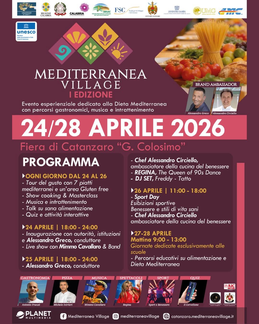 Apre oggi ufficialmente i battenti il Mediterranea Village, l'innovativo format esperienziale che fino al 28 aprile trasformerà ilPolo Fieristico di Catanzaro “G. Colosimo”nel tempio della Dieta Mediterranea. Non una fiera tradizionale, ma un villaggio dinamico dove il Patrimonio UNESCO viene celebrato attraverso un percorso che unisce salute, apprendimento e intrattenimento.