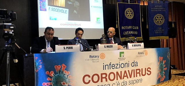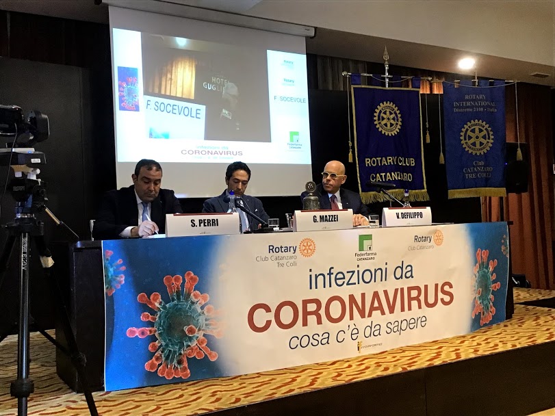 E’ questo l’intento del convegno sul tema “Coronavirus. Cosa c’è da sapere?”, promosso all’Hotel Guglielmo di Catanzaro dal “Rotary Club Catanzaro Tre Colli” e Rotary Club Catanzaro per tentare un approccio più razionale alla problematica, sfatando miti e false informazioni e promuovendo una più sana prevenzione e analisi della situazione attuale. Al tavolo dei relatori il presidente del Rotary Club di Catanzaro, Giuseppe Mazzei, il presidente del Rotary Club di Catanzaro “Tre colli”, Vincenzo Defilippo, presidente anche di Federfarma, l'assistente del Governatore, Salvatore Perri. Tra gli interventi qualificati, oltre quello di Carlo Torti, quello del professore associato di Malattie Infettive dell'UMG, Enrico Maria Trecarichi.