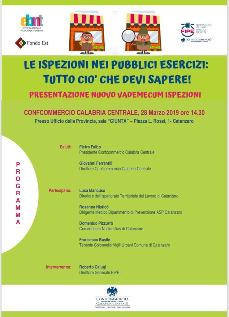 ConfCommercio Calabria Centrale ha organizzato un incontro, per giovedì 28 marzo, di formazione e approfondimento a tema "ispezioni nei pubblici esercizi".