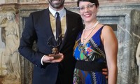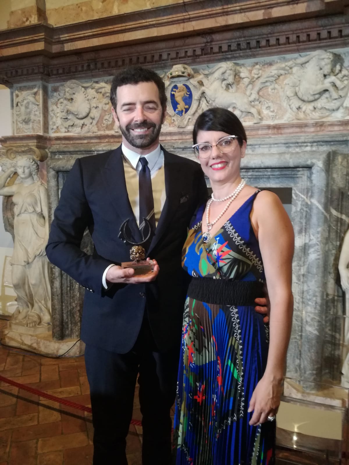 “Per il terzo anno, ho avuto l’onore di realizzare e consegnare una vera e propria creazione, diversa dalle consuete targhe, a personaggi illustri, nell’ambito di un premio così prestigioso, in una cornice incantevole. È un’opera in bronzo placcato in oro, con il travertino a richiamare la fontanella rionale; ho aggiunto anche due maschere tipiche della tragedia greca, quella triste e quella allegra, scolpite a mano e lavorate con la tecnica della fusione a cera persa in bronzo argentato”ha dichiarato Sacco.