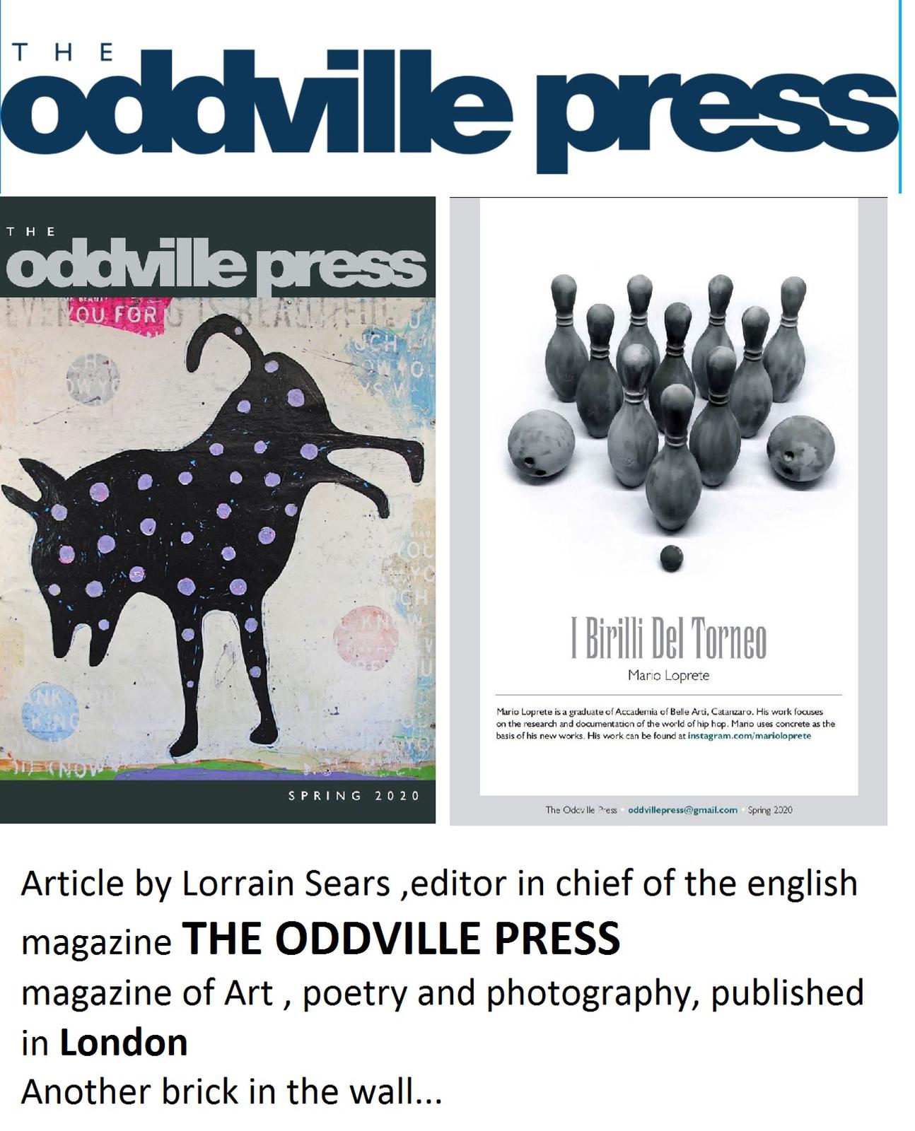 In particolare, l'immagine de "i birilli del torneo" svetta con descrizione e critica sulle pagine di "The Oddville press", un magazine d'arte poesia e fotografia molto diffuso a Londra, in un articolo a firma del caporedattore Lorrain Sears. Dalla spiaggia del Dadada Beach Museum, primo museo al mondo ad essere ospitato da uno stabilimento balneare, direttamente sulle pagine delle più prestigiose riviste d'arte al mondo: una soddisfazione non da poco per Mario Loprete, artista visionario del cemento ed eccellente ritrattista contemporaneo, e per il Dadada Beach Museum, che continua a far parlare di se per le sue esposizioni d'arte atipiche, poichè "immerse" e connaturate nel contesto spiaggia.