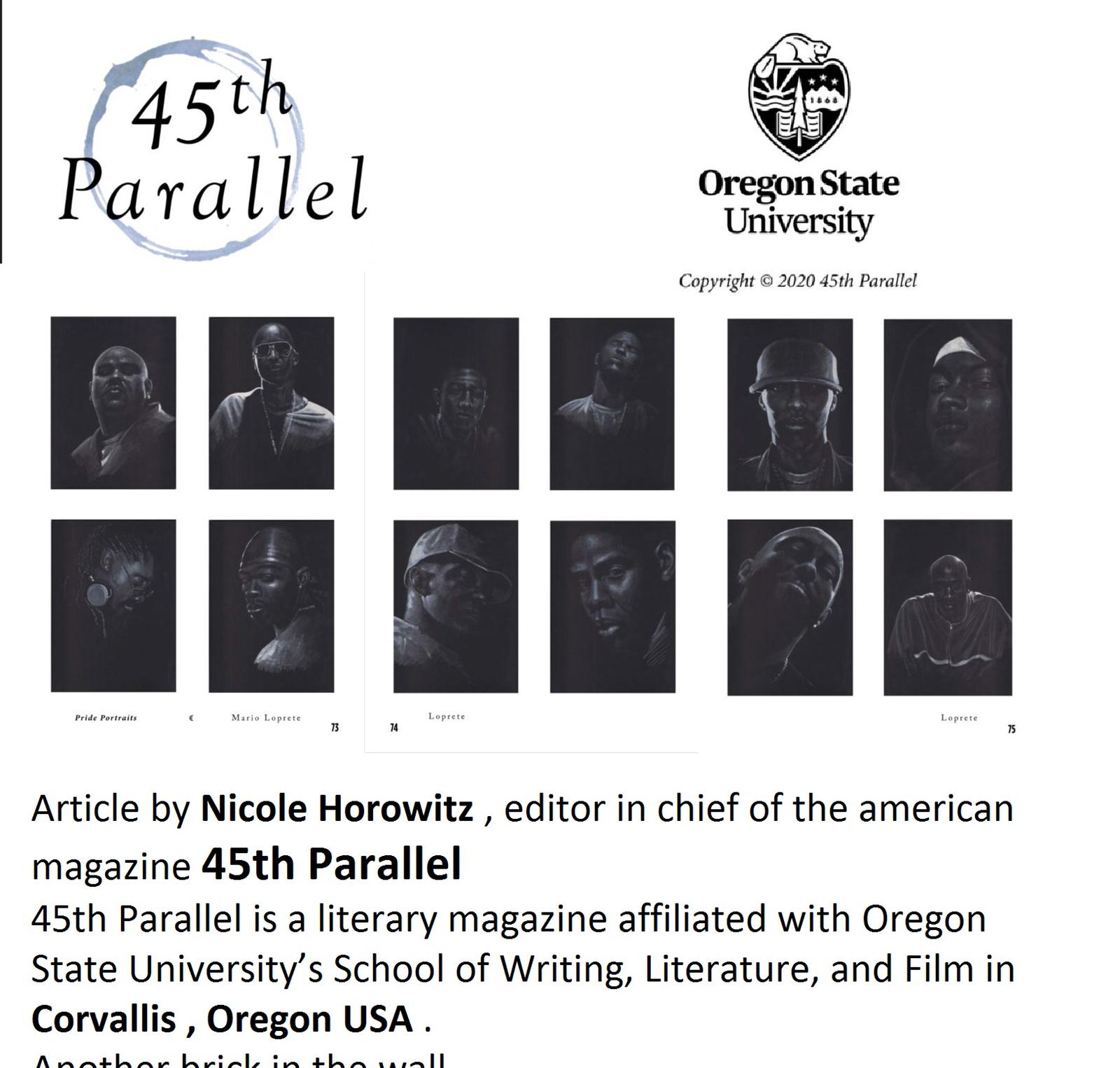Non solo a Londra: ma anche a Lakeside, in Montana, dove la concrete art di Loprete conquista addirittura la copertina e le prime pagine di "Biostories", un magazine letterario, con un approfondimento a cura di Mark Hummel Leichliter; e ancora su "45th Parallel", il magazine letterario affiliato con l'Università dell'Oregon e la sua scuola di scrittura, letteratura e cinema a Corvallis in Oregon (USA) con un articolo a cura del redattore capo Nicole Horowitz.