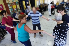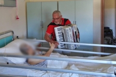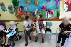 La musica, si sa, riesce sempre a far “vibrare” le emozioni e a coinvolgere tutti i presenti, anche quelli che , per quadro clinico, sono attualmente allettati ma felici di ricevere, dal Sig.Pietro e sua moglie Saveria, un dolce sorriso sulle note della fisarmonica, magistralmente suonata dal ”maestro”.