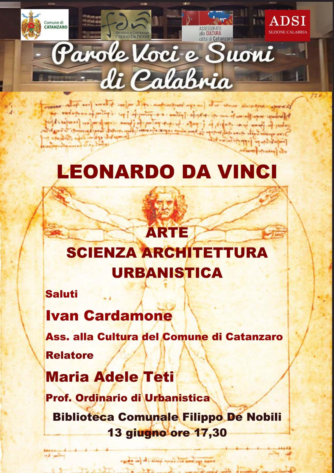 Lo ha annunciato il vicesindaco e assessore alla cultura, Ivan Cardamone, sottolineando che domani, giovedì 13 giugno, alle ore 17:30, nella sala Augusto Placanica della Biblioteca, la docente, ordinaria di Urbanistica, Maria Adele Teti, terrà una conferenza su Leonardo Da Vinci e il suo immenso lascito nei campi dell’arte, della scienza, dell’architettura e dell’urbanistica.