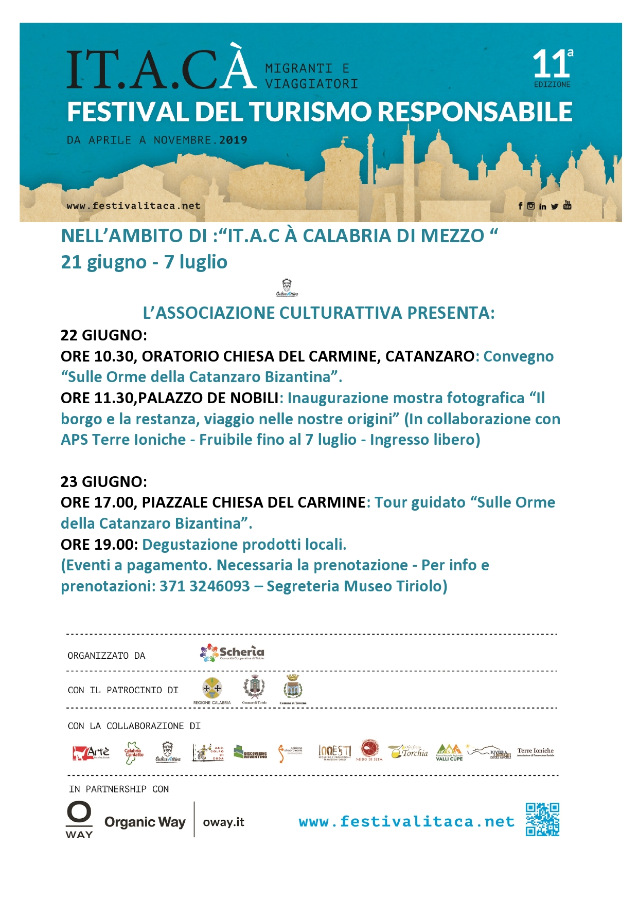 La tappa calabrese del festival, “IT.A.CÀ, Calabria di Mezzo”, è ideata e coordinata dalla Cooperativa Scherìa di Tiriolo.