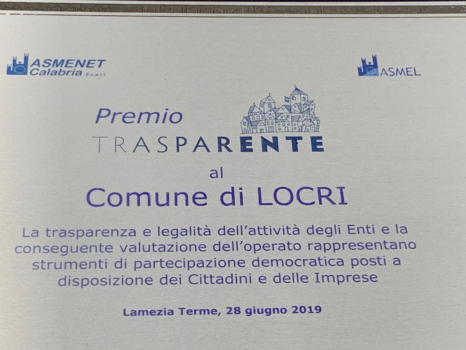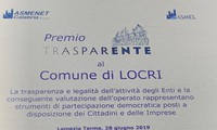 Consegnato nelle mani del segretario generale del Comune di Locri dr Domenico Libero SCUGLIA il premio “Comune TrasparEnte 2019”. Primo posto, dunque, per il Comune di Locri, nell’ambito della provincia di Reggio Calabria, per aver messo on-line, a disposizione dei cittadini, i propri atti e documenti.