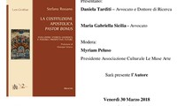 La Galleria d'Arte "Le Muse" di Cosenza ospiterà venerdì 30 marzo alle ore 17.00, la presentazione del libro "La costituzione apostolica Pastor bonus. Evoluzione storico-giuridica e possibili prospettive future" di Stefano Rossano (Aracne Editrice, 2014), addetto culturale alla Biblioteca del Pontificio Istituto Orientale (Roma). Relatori gli avvocati Daniela Tarditi e Maria Gabriella Sicilia, modera l'incontro la presidente della Galleria d'Arte "Le Muse" Myriam Peluso. Nell'esercizio ordinario del proprio ufficio il Romano Pontefice si avvale di un complesso di persone, uffici e istituzioni denominata Curia Romana, la cui attività è regolata dalla costituzione apostolica Pastor bonus, promulgata da Giovanni Paolo II il 28 giugno 1988. L'opera parte da un excursus storico sulla sua formazione e intende esaminare la natura e la funzione della Curia romana secondo la costituzione apostolica Pastor bonus, che ha affidato a ciascun dicastero compiti e attribuzioni ben determinate nella gestione degli affari concernenti la Chiesa universale e collaborano con il Romano Pontefice nell'esercizio del suo supremo ufficio di Pastore della Chiesa universale. Il libro, che affronta il tema della riforma della Curia Romana, benché pubblicato nel 2014 è quanto mai attuale. Dopo aver descritto le caratteristiche storico-giuridiche e le funzioni istituzionali dei dicasteri e organismi della Curia romana, vengono esposte alcune linee teoriche e operative per una loro ristrutturazione, anticipando in qualche modo uno dei temi del pontificato di Papa Francesco. L’autore ha sempre affermato che è necessario un “mutamento di mentalità”, premessa indispensabile a qualsiasi revisione funzionale; i progetti devono essere espressione di una mens che riconduca la Curia Romana alle sue prerogative di strumento e servizio al Vescovo di Roma e alla Chiesa universale. Il 21 dicembre 2014 Papa Francesco rivolgendosi alla Curia romana disse: “È bello pensare alla Curia romana come a un piccolo modello di Chiesa, cioè come a un “corpo” che cerca seriamente e quotidianamente di essere più vivo, più armonioso e più unito in sé stesso e con Cristo”.