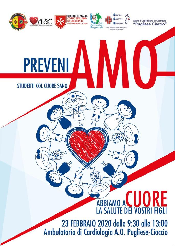 Per questa ragione, il Lions Club Catanzaro Host, presieduto dal dottor Giuseppe Raiola, e l'AIAC (Associazione Italiana Aritmologia e Cardiostimolazione) Calabria, guidata dal dottor Francesco Arabia, in collaborazione con il Raggruppamento Calabria del Corpo Italiano di Soccorso dell'Ordine di Malta, l'Ufficio Scolastico Regionale e l'Azienda Ospedaliera Pugliese Ciaccio, hanno lanciato un'importante e significativa campagna di prevenzione cardiovascolare: “PreveniAmo: studenti col cuore sano”.