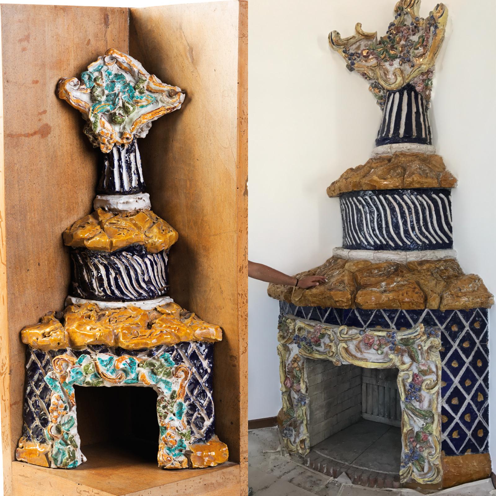 “Lo scoop si deve all’esperto d’arte e gallerista Marco Fabio Apolloni che, nel corso della recente mostra su Leoncillo Leonardi svoltasi a Roma, ha scoperto che un modellino di camino esposto nella rassegna altro non era che il bozzetto del grande camino monumentale in ceramica di Palazzo Fazzari”.