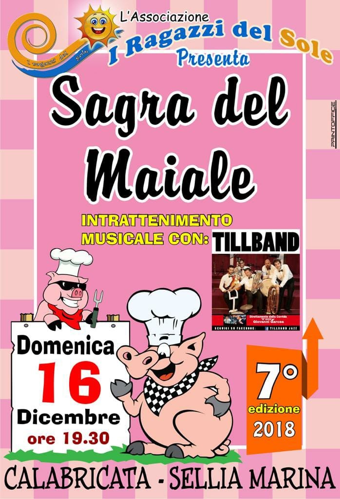 Si terrà domenica 16 dicembre la 7^ edizione de "la sagra del maiale" proposta dall associazione I ragazzi del sole.