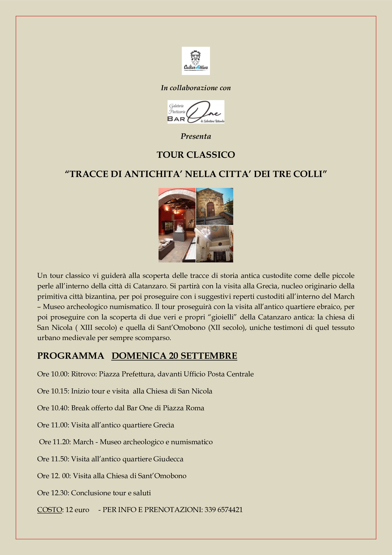 Prosegue, inoltre, il percorso di collaborazione tra CulturAttiva e i gestori di alcuni locali del centro storico e durante il tour è previsto un break offerto dal Bar One di piazza Roma.