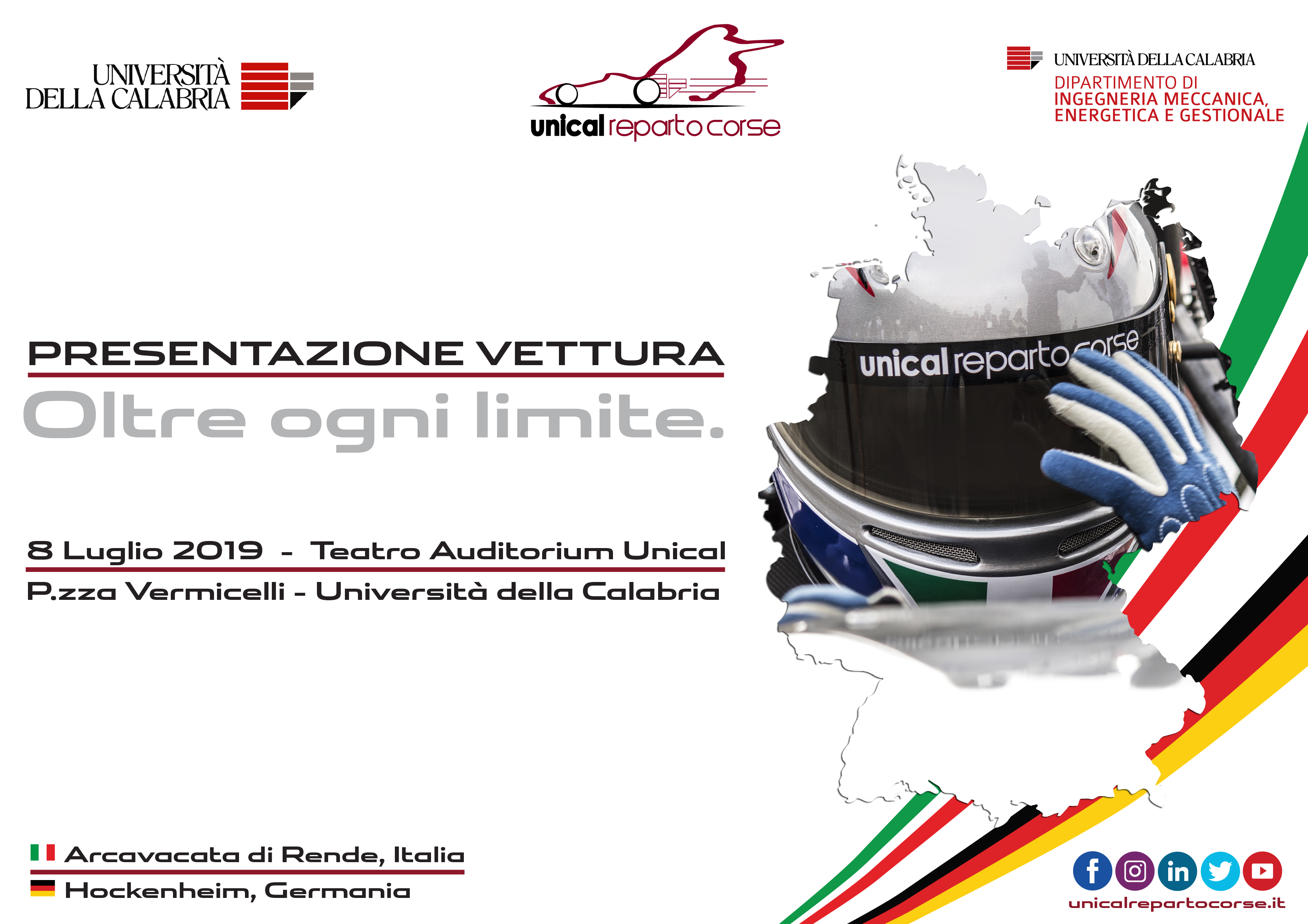 La presentazione della vettura 2019 dell’Unical Reparto Corse si terrà lunedì 8 luglio alle ore 16:30, presso il Teatro Auditorium Unical dell’Università della Calabria (Piazza Vermicelli).