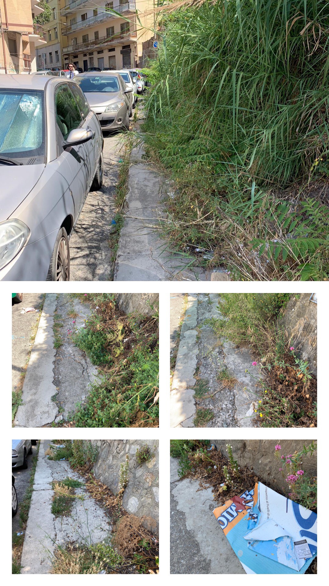 Lungo quei marciapiedi erbacce alte, rifiuti e buche enormi che testimoniano che la zona non andrebbe solo ripulita ma anche riqualificata.