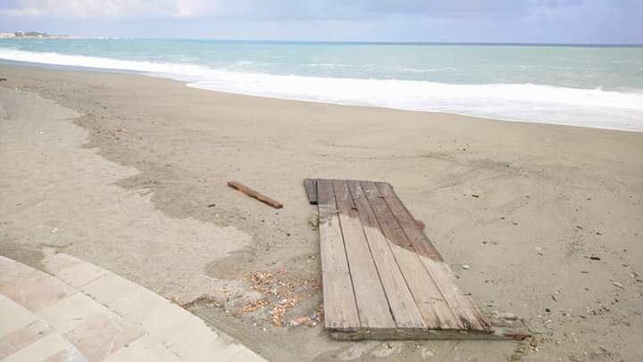 L’arrivo dell’equinozio autunnale ha portato, come era prevedibile, alle prime mareggiate di stagione e le passerelle dimenticate sulla spiaggia sono state divelte e trascinate in mare.